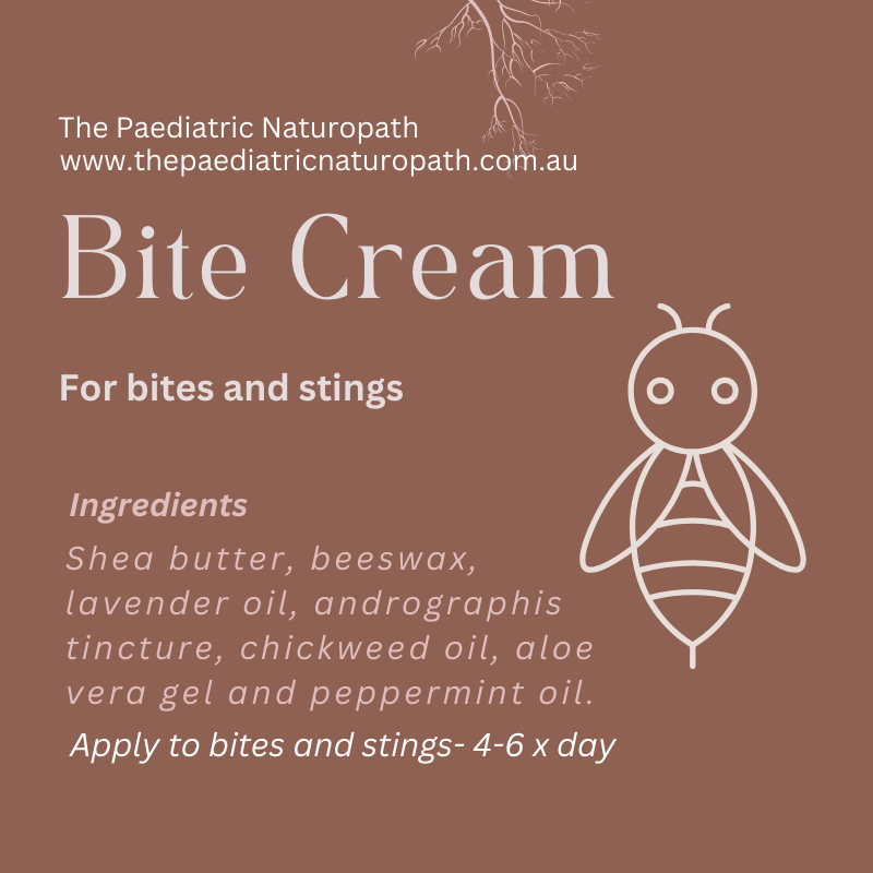 Soothe irritated skin with our gentle, all-natural Bite Cream. Crafted with a nourishing base of shea butter and beeswax, this cream is infused with calming lavender oil, cooling peppermint oil, aloe vera gel, chickweed oil, and the protective power of andrographis tincture. Together, these botanicals help ease discomfort, reduce redness, and calm the itch from bites and stings.