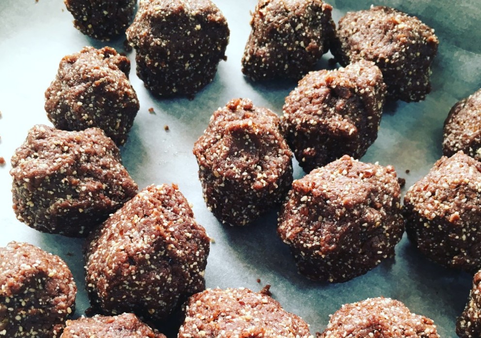 If your child is allergic to nuts, it rules out lots of normal bliss ball recipes. These balls are made with sunflower seeds instead of tree nuts, but still taste great!